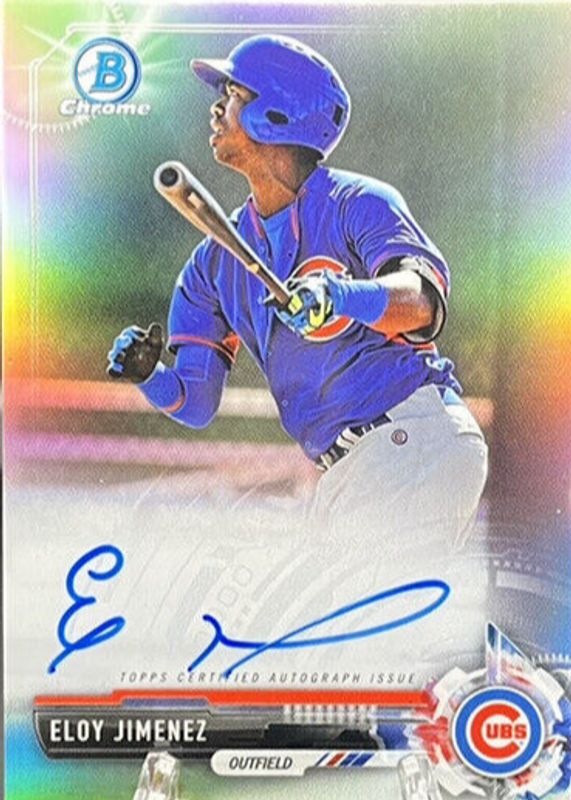 The Eloy Jimenez 2017 Bowman #CPA-EJ Chrome Prospect Auto - Refractor /499 card in Raw condition has not changed in price in the last 30 days and was last sold for $79.99 .