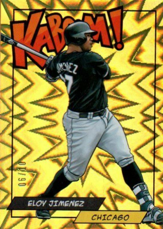 Auctions Ending Soon for Eloy Jimenez 2018 Panini Rewards #K-EJ Kaboom! - Gold /10 RAW