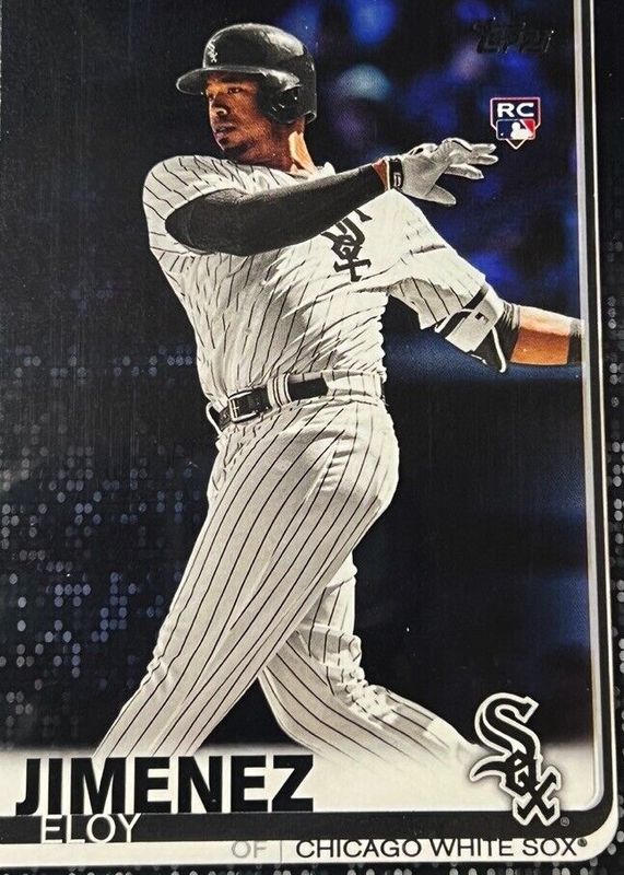 This card is 1 of 15 Eloy Jimenez's card variations in the 2019 Topps set being tracked by Sports Card Investor, including Base, 150th Anniversary, Purple, Rainbow Foil, and Yellow.