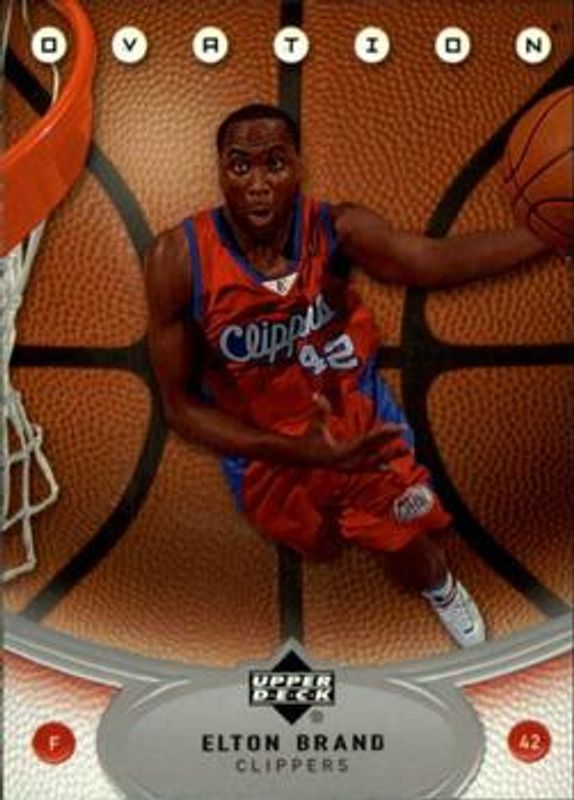 The Elton Brand 2006 Upper Deck Ovation #31 Base /999 card is 1 of 3 Elton Brand's card variations in the 2006 Upper Deck Ovation set being tracked by Sports Card Investor, including Gold /99, and Leading Performers.