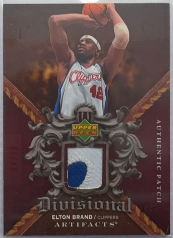 The Elton Brand 2007 Upper Deck Artifacts #DA-EB Divisional Artifacts Patches - Red /29 card is 1 of 17 Elton Brand's card variations in the 2007 Upper Deck Artifacts set being tracked by Sports Card Investor, including Base /699, Gold /100, Red /50, Blue /10, and Copper /10.
