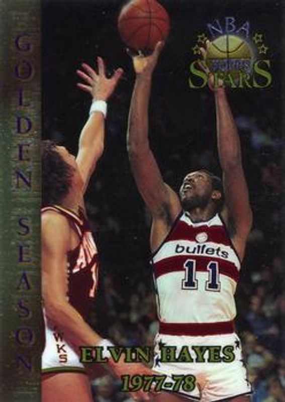 The Elvin Hayes 1996 Topps Stars #71 Finest card is 1 of 20 Elvin Hayes' card variations in the 1996 Topps Stars set being tracked by Sports Card Investor, including #21 Base, #121 Base, #71 Base, #121 Finest, and #21 Finest.