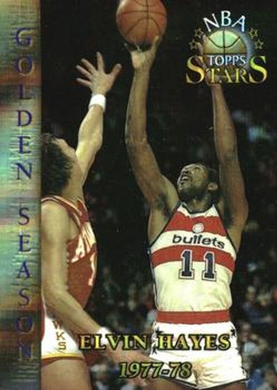 The Elvin Hayes 1996 Topps Stars #71 Finest Atomic Refractor card is 1 of 20 Elvin Hayes' card variations in the 1996 Topps Stars set being tracked by Sports Card Investor, including #21 Base, #121 Base, #71 Base, #121 Finest, and #21 Finest.