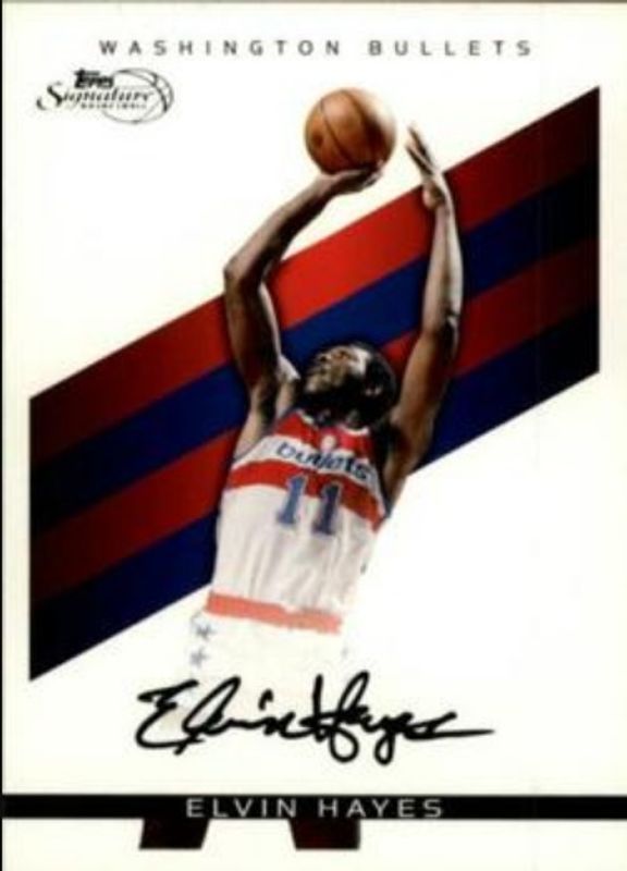 The Elvin Hayes 2008 Topps Signature #TS-EH Facsimile Black /289 card is 1 of 4 Elvin Hayes' card variations in the 2008 Topps Signature set being tracked by Sports Card Investor, including Base /2325, Autographs /917, and Facsimile Red /869.