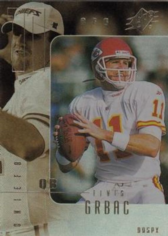 The Elvis Grbac 1999 SPx #43 Base /1999 card is 1 of 3 Elvis Grbac's card variations in the 1999 SPx set being tracked by Sports Card Investor, including Radiance /100, and Spectrum /1.
