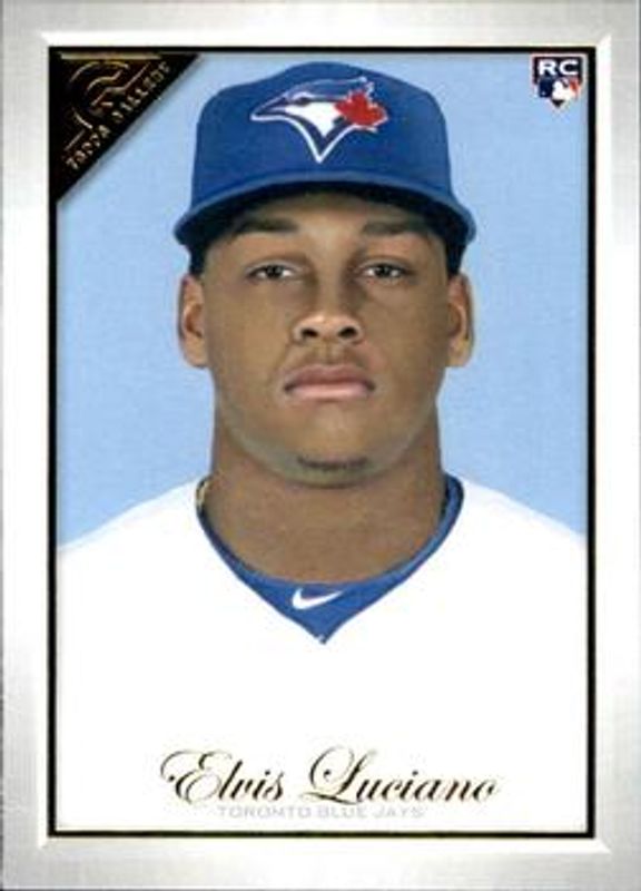 The Elvis Luciano 2019 Topps Gallery #112 Base Rookie card is 1 of 18 Elvis Luciano's card variations in the 2019 Topps Gallery set being tracked by Sports Card Investor, including Artist Proof, Wood, Private Issue /250, Green /99, and Blue /50.
