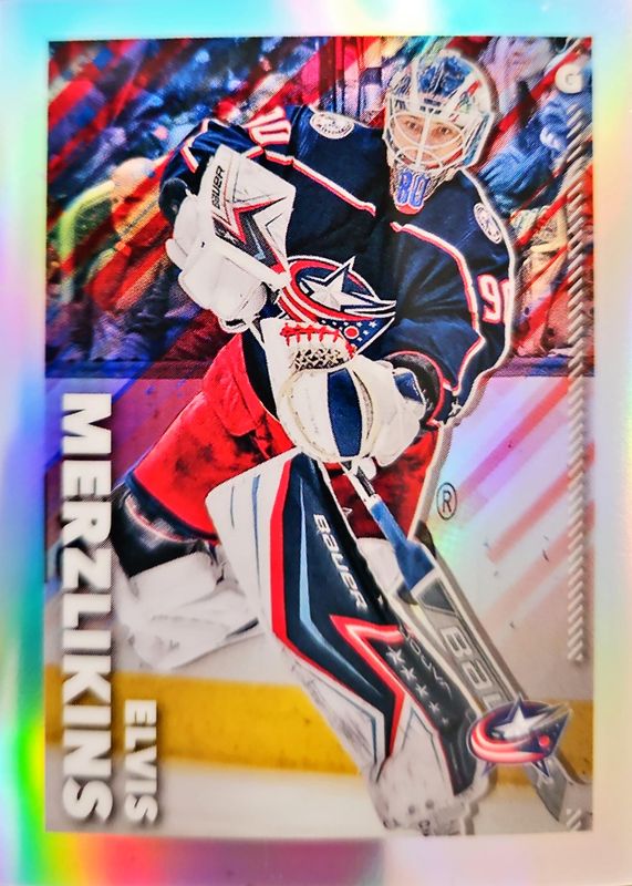 Best Prices Available For Sale of Elvis Merzlikins 2022 Topps Chrome NHL Sticker Collection #149 Refractor /99