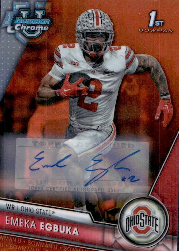 Emeka Egbuka 2023 1st Bowman University Chrome Orange auto /25, OSU Star WR