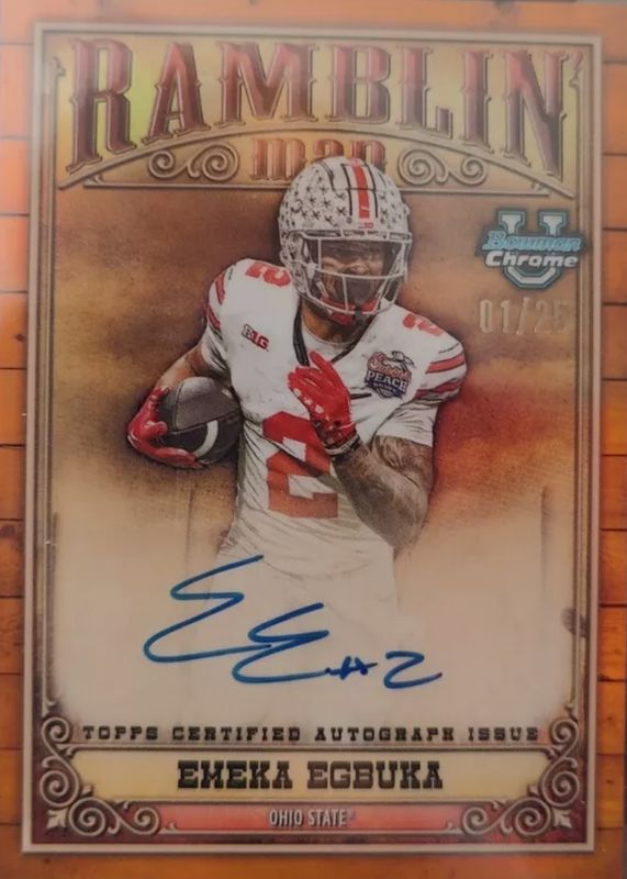 2023 Topps Bowman U Chrome Emeka Egbuka Orange Ramblin Man OnCard Auto /25 SSP