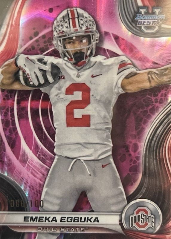 Best Prices Available For Sale of Emeka Egbuka 2024 Bowman Best University #97 Pink Lava Refractor /100
