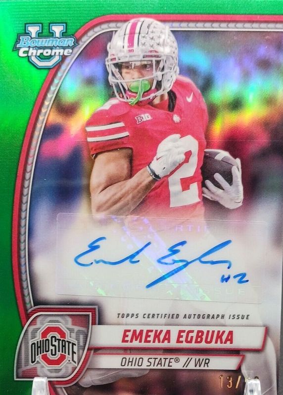 2024 BOWMAN CHROME UNIVERSITY EMEKA EGBUKA (AUTO) GREEN REFRACTOR 57/99 #PA-EEG