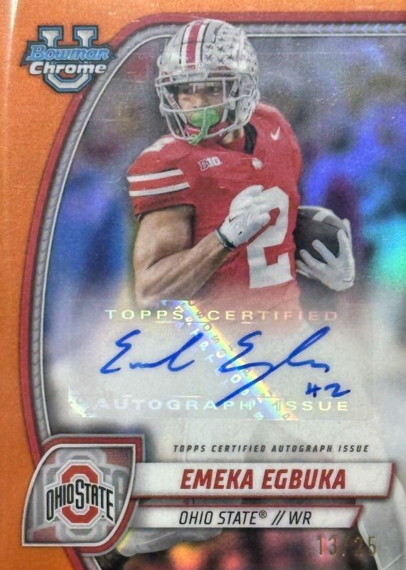 2024 Bowman Chrome U Football Emeka Egbuka Refractor Orange Auto Refractor 13/25