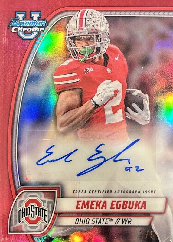 Emeka Egbuka 2024 Bowman Chrome University #PA-EEG Prospect Auto - Red Refractor /5 RAW Price Guide