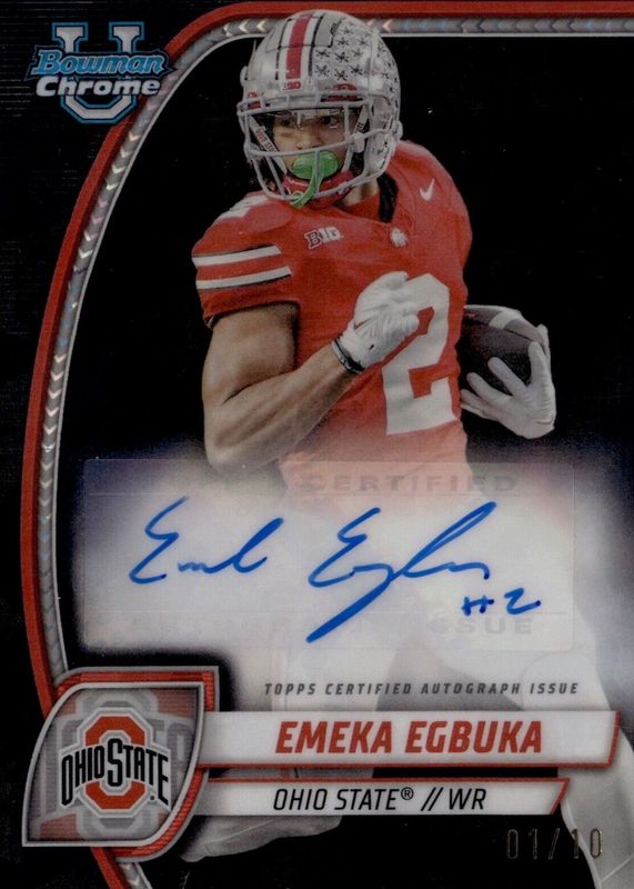 2024 Bowman Chrome U Sapphire Emeka Egbuka Black Auto 01/10