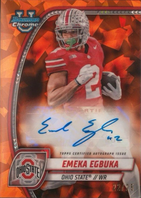 EMEKA EGBUKA 2024 BOWMAN CHROME U SAPPHIRE ORANGE AUTO RC /25 OHIO STATE