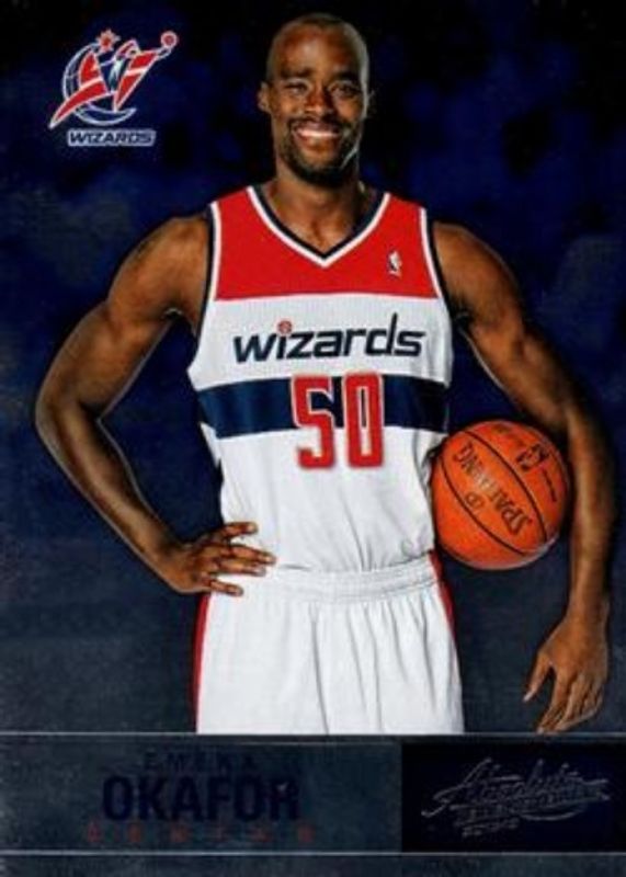 The Emeka Okafor 2012 Absolute #42 Base /399 card is 1 of 4 Emeka Okafor's card variations in the 2012 Absolute set being tracked by Sports Card Investor, including Spectrum Gold /25, Spectrum Platinum /10, and Spectrum Black /1.