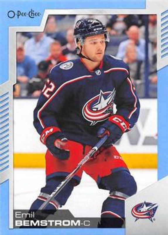 The Emil Bemstrom 2020 O-Pee-Chee #203 Blue card is 1 of 7 Emil Bemstrom's card variations in the 2020 O-Pee-Chee set being tracked by Sports Card Investor, including Base, Red, Retro, Retro Blank Back, and Retro Black /100.