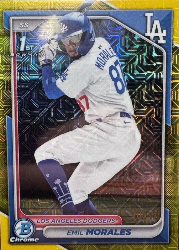 2024 Bowman Chrome 1st Emil Morales Yellow Mojo Refractor /75 Top Dodgers Prosp.