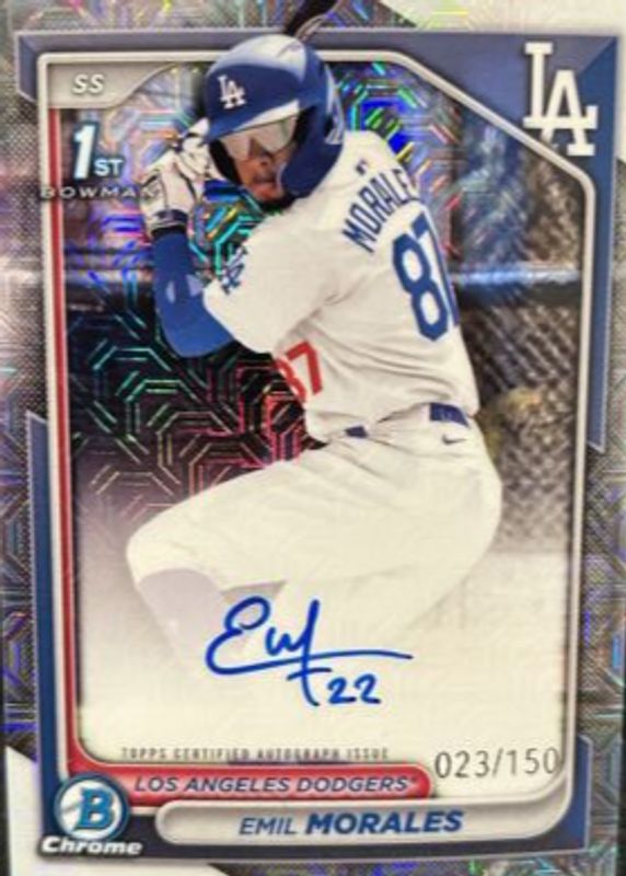 EMIL MORALES 1ST 2024 BOWMAN CHROME HTA CHOICE REFRACTOR AUTO #/150 RC DODGERS🔥