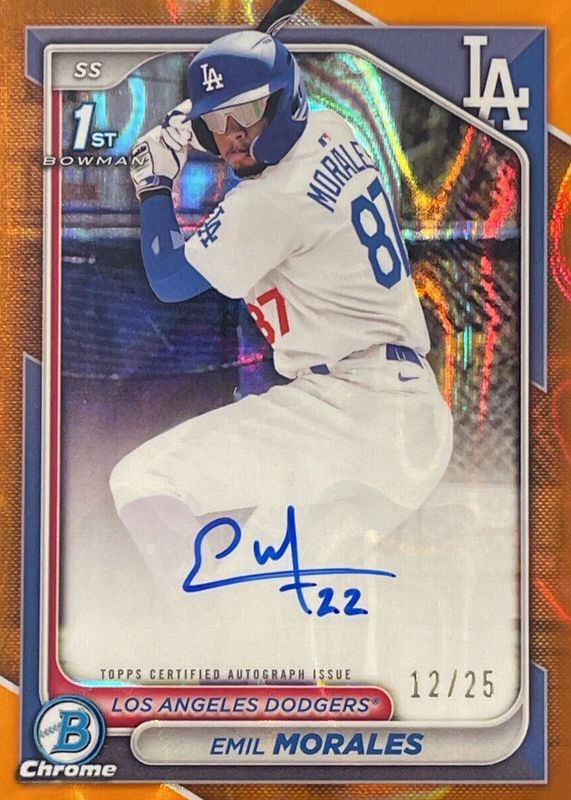 2024 Topps Bowman Chrome Emil Morales 1st Bowman Auto Orange Lava /25 Dodgers