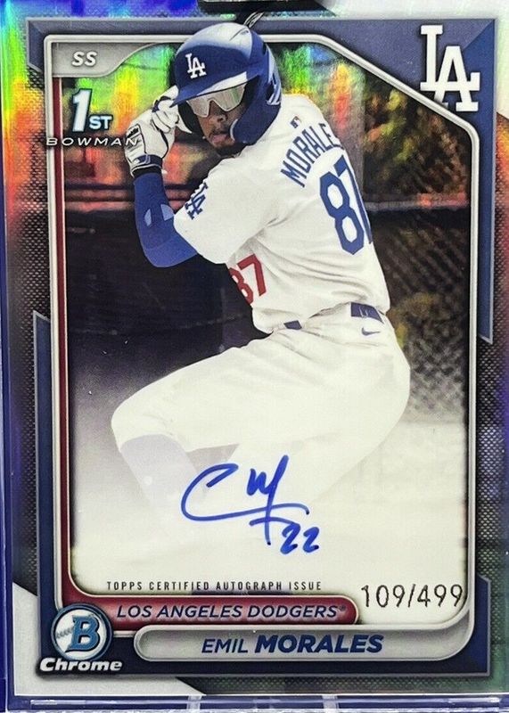 🔥 2024 Bowman Chrome Emil Morales Refractor Auto /499 Dodgers 1st Bowman RC-OGP