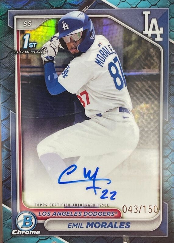 2024 Bowman Chrome 1ST Emil Morales Blue Reptilian Refractor Auto /150 Dodgers