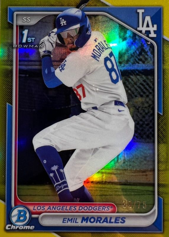 2024 Bowman Chrome Emil Morales 1st Bowman Prospects Yellow 21/75 Dodgers