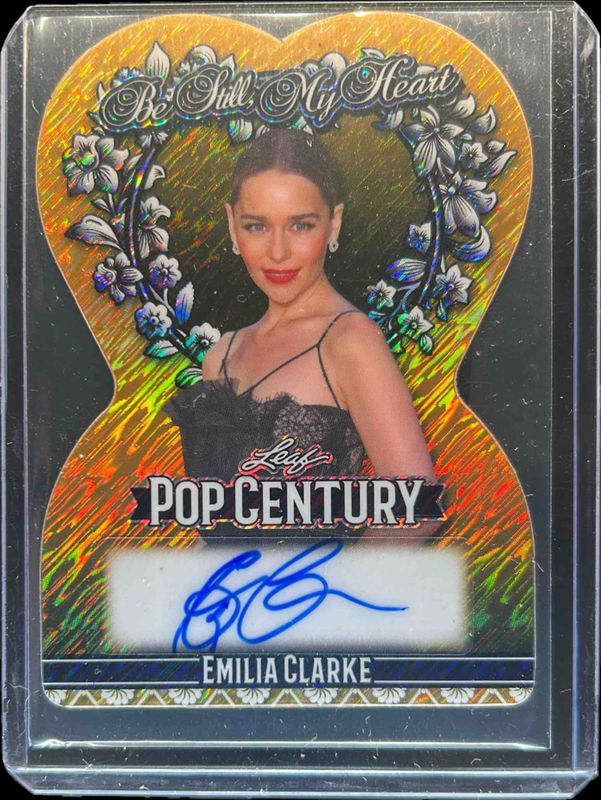 Emilia Clarke 2025 Leaf Metal Pop Century #BH-EC1 Be Still, My Heart Diagonal Shimmer Gold /1 RAW Price Guide