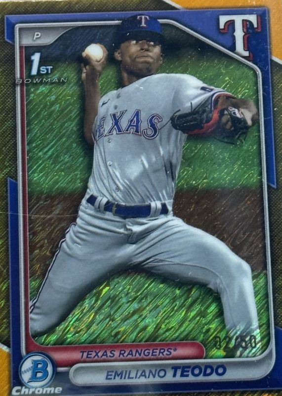 EMILIANO TEODO 2024 BOWMAN CHROME 1ST GOLD SHIMMER RANGERS /50 Q3855