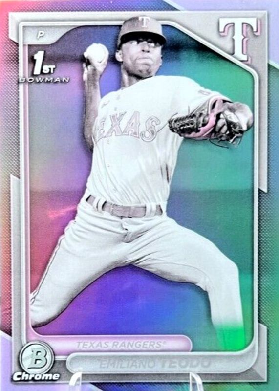EMILIANO TEODO 2024 BOWMAN CHROME 1ST PEARL REFRACTOR RANGERS Q3249