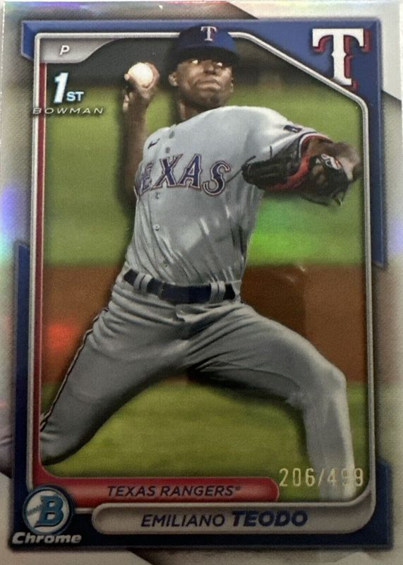 2024 Bowman Chrome Emiliano Teodo Refractor 1st #215/499 Rangers