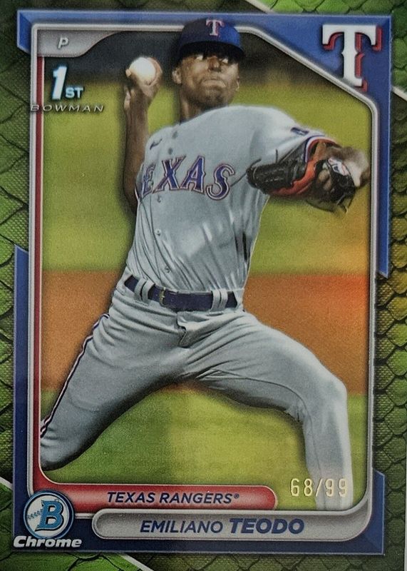 2024 Bowman Chrome 1st Emiliano Teodo Reptilian Green #'d 71/99 - Texas Rangers