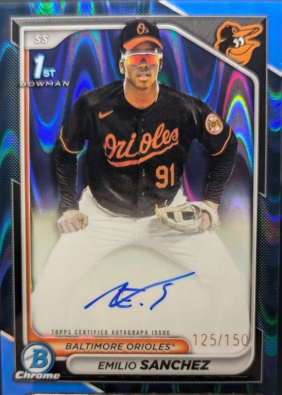 Emilio Sanchez 2024 Bowman Chrome 1st Blue RayWave Auto 080/150 #CPA-ES Orioles