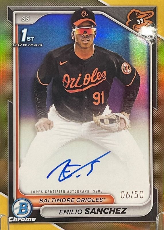 1st EMILIO SANCHEZ 2024 Bowman Chrome Auto Gold Speckle #'d 24/50 Balt Orioles