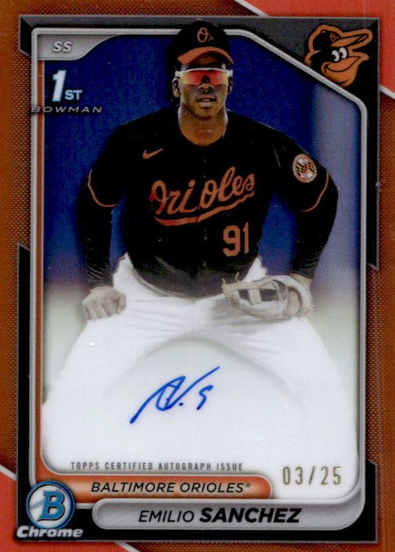 Emilio Sanchez 2024 Bowman Chrome #CPA-ES Prospect Auto - Orange Refractor /25 (1st) RAW Price Guide