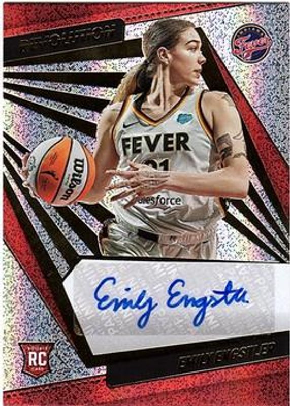 The Emily Engstler 2022 Revolution WNBA #AG-EEG Autographs Rookie card is 1 of 19 Emily Engstler's card variations in the 2022 Revolution WNBA set being tracked by Sports Card Investor, including Base, Astro, Fractal, Galactic, and Groove.