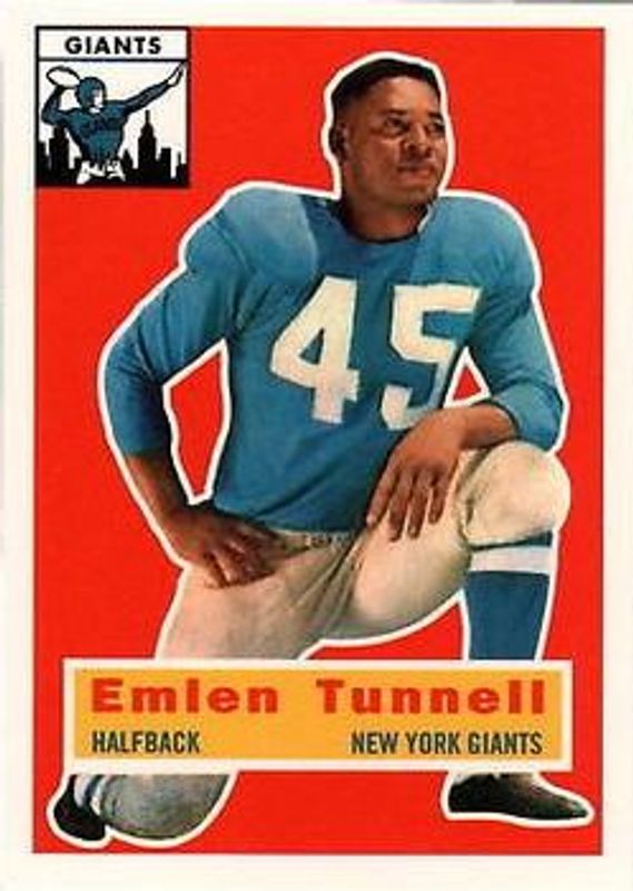 Emlen Tunnell's Football cards are available in at least 8 sets. Emlen Tunnell's biggest 7-day price movers are 1994 Topps Archives 1956 #17 Base, 1994 Topps Archives 1956 #17 Gold, and 1994 Topps Archives 1957 #35 Base.