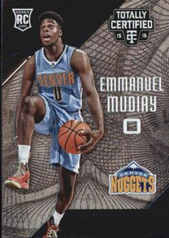 Emmanuel Mudiay's Basketball cards are available in at least 63 sets. Emmanuel Mudiay's biggest 7-day price movers are 2015 Totally Certified #190 Base, 2015 Totally Certified #190 Mirror Blue /99, and 2015 Totally Certified #190 Mirror Holo Blue /1.