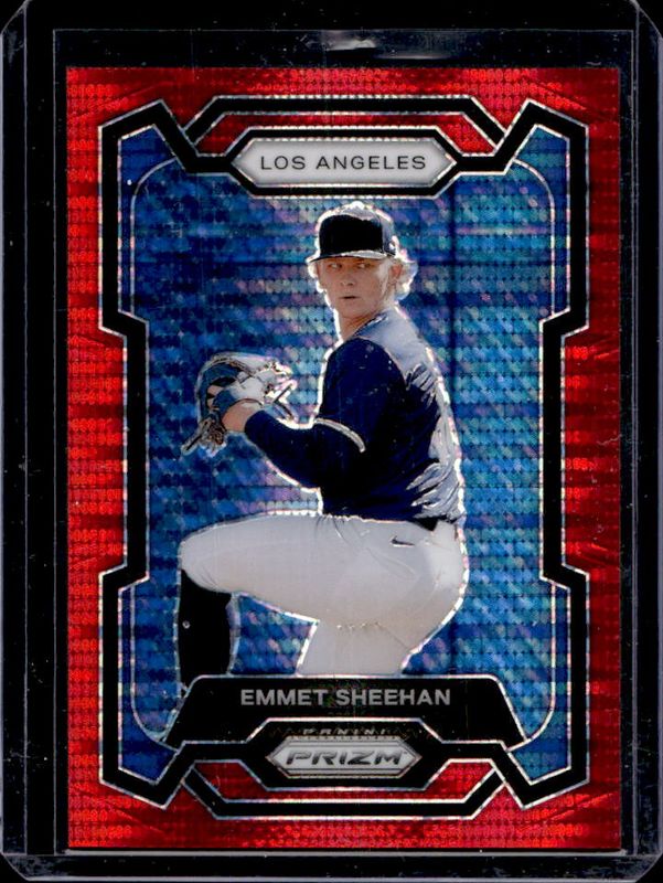 The Emmet Sheehan 2024 Prizm #54 Red Pulsar /399 Rookie card is 1 of 30 Emmet Sheehan's card variations in the 2024 Prizm set being tracked by Sports Card Investor, including Base, Blue Ice, Green, Green Ice, and Pink Ice.