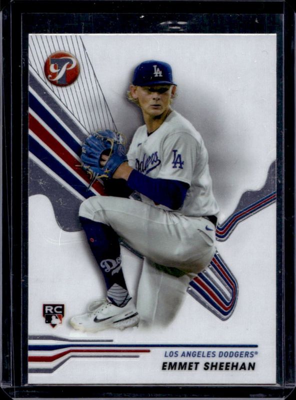 The Emmet Sheehan 2024 Topps Pristine #174 Base Rookie card is 1 of 18 Emmet Sheehan's card variations in the 2024 Topps Pristine set being tracked by Sports Card Investor, including Pristine Refractor, Refractor, Green Refractor /150, Pristine Purple Refractor /99, and Purple Refractor /99.
