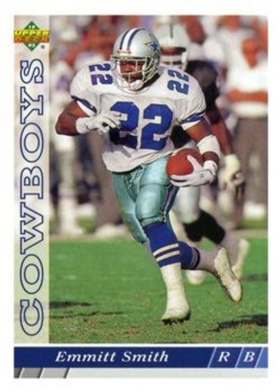 The Emmitt Smith 1993 Upper Deck #359 Base card is 1 of 11 Emmitt Smith's card variations in the 1993 Upper Deck set being tracked by Sports Card Investor, including #421 Base, #425 Base, #AT7 America's Team, America's Team, and America's Team Jumbo.