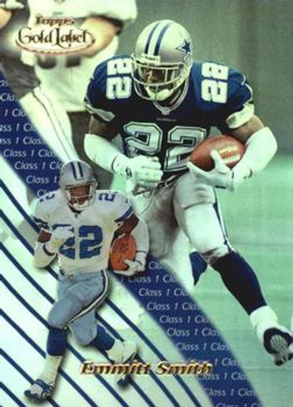 The Emmitt Smith 2000 Topps Gold Label #16 Base card is 1 of 4 Emmitt Smith's card variations in the 2000 Topps Gold Label set being tracked by Sports Card Investor, including Class 2, Class 3, and Premium /1000.
