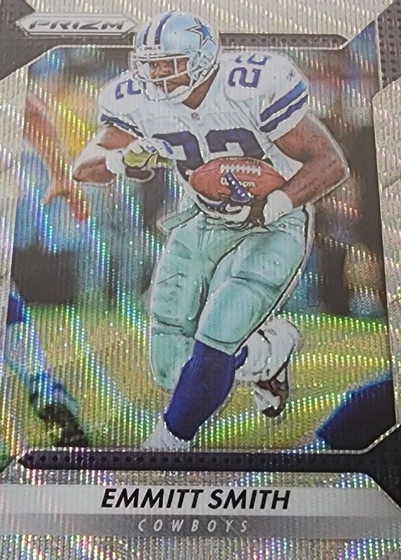 This card is 1 of 21 Emmitt Smith's card variations in the 2016 Prizm set being tracked by Sports Card Investor, including Flash, Green, Pink, Red White Blue Disco, and Silver.