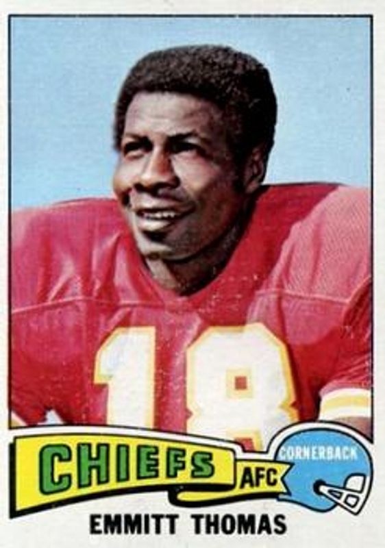 The Emmitt Thomas 1975 Topps #340 Base card is 1 of 2 Emmitt Thomas' card variations in the 1975 Topps set being tracked by Sports Card Investor, including Base.