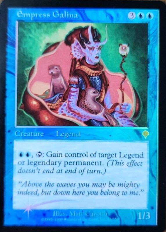 The Empress Galina 2000 Invasion #54 Foil card in Raw TCG (Lightly Played) condition has not changed in price in the last 30 days and was last sold for $39.00 .