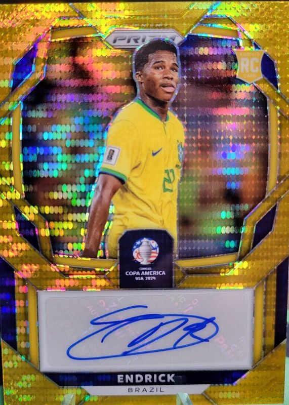 The Endrick 2024 Prizm Copa America #S-E Signatures - Gold Pulsar (/10) card in Raw condition has not changed in price in the last 30 days and was last sold for $2,403.00 .