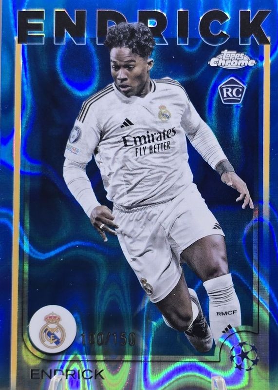 Endrick 2024-25 Topps Chrome UEFA Blue Lava Refractor 050/150 RC #100