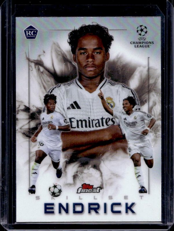 The Endrick 2024 Topps Finest UEFA Club Competitions #SK-4 Finest Skillset card is 1 of 98 Endrick's card variations in the 2024 Topps Finest UEFA Club Competitions set being tracked by Sports Card Investor, including Base, Refractor, Purple Refractor /299, Sky Blue Refractor /275, and Pink RayWave Refractor /250.