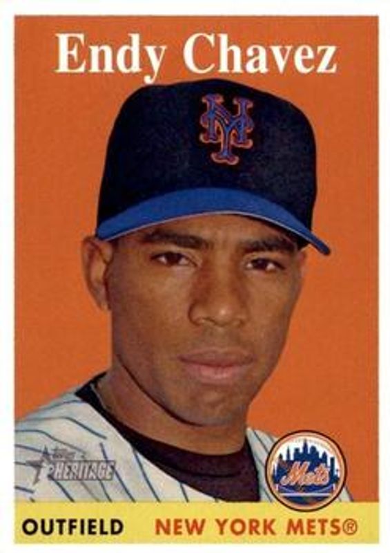 The Endy Chavez 2007 Topps Heritage #155 Base card is 1 of 4 Endy Chavez's card variations in the 2007 Topps Heritage set being tracked by Sports Card Investor, including Chrome /1958, Chrome Refractor /558, and Chrome Black Refractor /58.