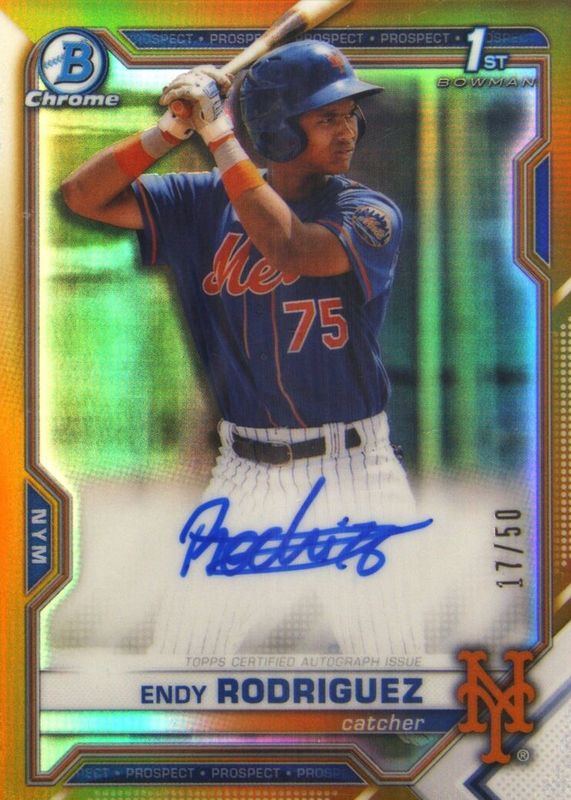 Best Prices Available For Sale of Endy Rodriguez 2021 Bowman #CPA-ER Chrome Prospect Auto - Gold Refractor /50 (1st)